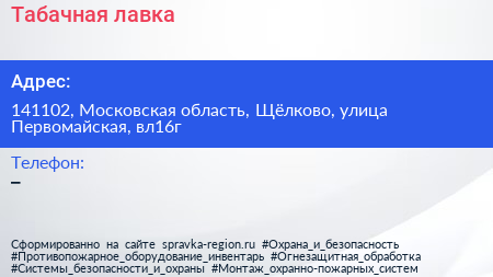 Табачная лавка по адресу 141102, Московская область, Щёлково, улица Первомайская, вл16г в дальнейшем Организация, размещена в следующих категориях: