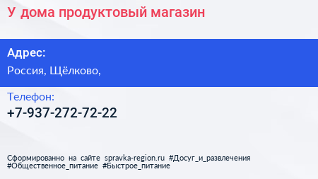 У дома, продуктовый магазин по адресу с3, Изумрудный бульвар, КП «Варежки-3», коттеджный поселок «Варежки-3», Жегалово, Серково, городской округ Щёлково, Московская область, Центральный федеральный округ, 141181, Россия в дальнейшем Организация, размещена в следующих категориях: