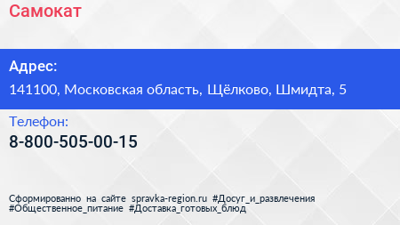 Самокат по адресу 141100, Московская область, Щёлково, Шмидта, 5 в дальнейшем Организация, размещена в следующих категориях:
