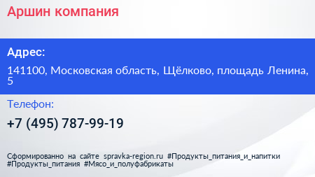Аршин, компания по адресу 141100, Московская область, Щёлково, площадь Ленина, 5 в дальнейшем Организация, размещена в следующих категориях:
