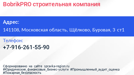 BobrikPRO, строительная компания по адресу 141108, Московская область, Щёлково, Буровая, 3 ст1 в дальнейшем Организация, размещена в следующих категориях: