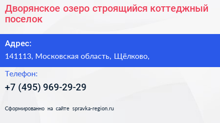 Дворянское озеро, строящийся коттеджный поселок по адресу 141113, Московская область, Щёлково, в дальнейшем Организация, размещена в следующих категориях: