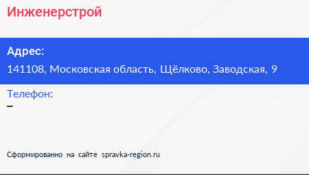 Инженерстрой по адресу 141108, Московская область, Щёлково, Заводская, 9 в дальнейшем Организация, размещена в следующих категориях: