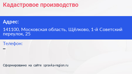 Кадастровое производство по адресу 141100, Московская область, Щёлково, 1-й Советский переулок, 25 в дальнейшем Организация, размещена в следующих категориях: