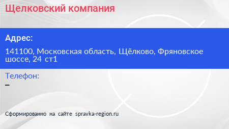 Щелковский, компания по адресу 141100, Московская область, Щёлково, Фряновское шоссе, 24 ст1 в дальнейшем Организация, размещена в следующих категориях: