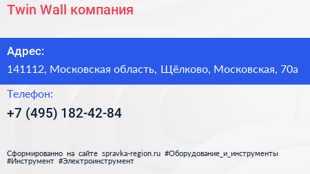Twin Wall, компания по адресу 141112, Московская область, Щёлково, Московская, 70а в дальнейшем Организация, размещена в следующих категориях: