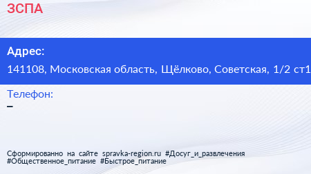 ЗСПА по адресу 141108, Московская область, Щёлково, Советская, 1/2 ст1 в дальнейшем Организация, размещена в следующих категориях: