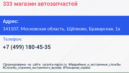 333, магазин автозапчастей по адресу 141107, Московская область, Щёлково, Браварская, 1а в дальнейшем Организация, размещена в следующих категориях: