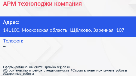 АРМ технолоджи, компания по адресу 141100, Московская область, Щёлково, Заречная, 107 в дальнейшем Организация, размещена в следующих категориях:
