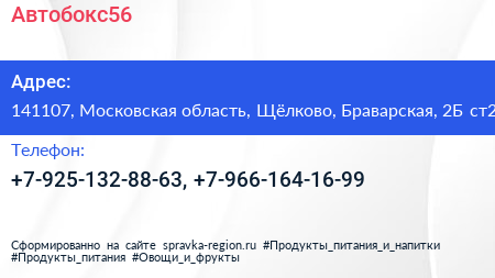 Автобокс56 по адресу 141107, Московская область, Щёлково, Браварская, 2Б ст2 в дальнейшем Организация, размещена в следующих категориях: