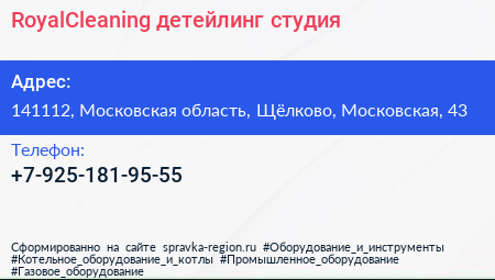 RoyalCleaning, детейлинг-студия по адресу 141112, Московская область, Щёлково, Московская, 43 в дальнейшем Организация, размещена в следующих категориях:
