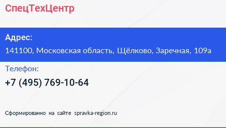 СпецТехЦентр по адресу 141100, Московская область, Щёлково, Заречная, 109а в дальнейшем Организация, размещена в следующих категориях: