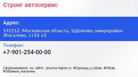 Стронг, автосервис по адресу 141112, Московская область, Щёлково, микрорайон Жегалово, ст16 к3 в дальнейшем Организация, размещена в следующих категориях: