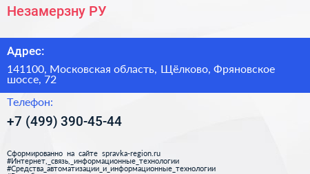 Незамерзну.РУ по адресу 141100, Московская область, Щёлково, Фряновское шоссе, 72 в дальнейшем Организация, размещена в следующих категориях: