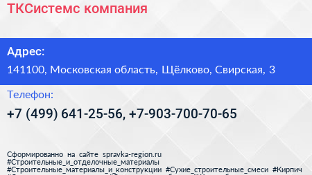 ТКСистемс, компания по адресу 141100, Московская область, Щёлково, Свирская, 3 в дальнейшем Организация, размещена в следующих категориях: