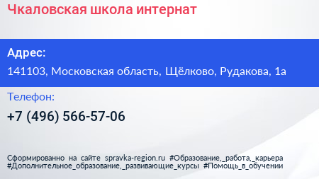 Чкаловская школа-интернат по адресу 141103, Московская область, Щёлково, Рудакова, 1а в дальнейшем Организация, размещена в следующих категориях: