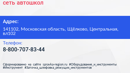 сеть автошкол по адресу 141102, Московская область, Щёлково, Центральная, вл102 в дальнейшем Организация, размещена в следующих категориях: