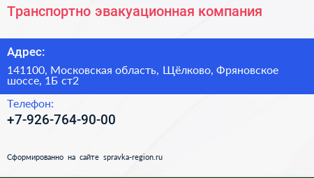 Транспортно-эвакуационная компания по адресу 141100, Московская область, Щёлково, Фряновское шоссе, 1Б ст2 в дальнейшем Организация, размещена в следующих категориях: