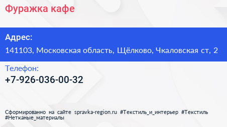 Фуражка, кафе по адресу 141103, Московская область, Щёлково, Чкаловская ст, 2 в дальнейшем Организация, размещена в следующих категориях: