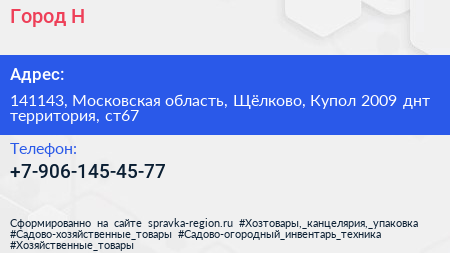 Город Н по адресу 141143, Московская область, Щёлково, Купол 2009 днт территория, ст67 в дальнейшем Организация, размещена в следующих категориях: