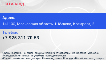 Патилэнд по адресу 141100, Московская область, Щёлково, Комарова, 2 в дальнейшем Организация, размещена в следующих категориях: