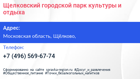 Щелковский городской парк культуры и отдыха по адресу Московская область, Щёлково, в дальнейшем Организация, размещена в следующих категориях: