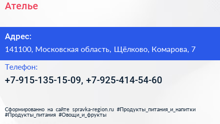 Ателье по адресу 141100, Московская область, Щёлково, Комарова, 7 в дальнейшем Организация, размещена в следующих категориях: