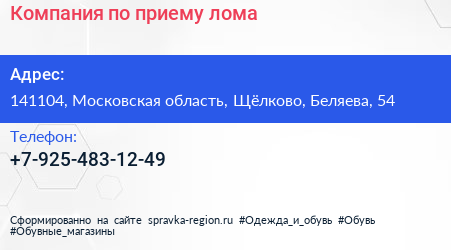Компания по приему лома по адресу 141104, Московская область, Щёлково, Беляева, 54 в дальнейшем Организация, размещена в следующих категориях: