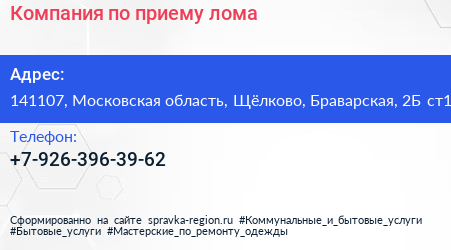 Компания по приему лома по адресу 141107, Московская область, Щёлково, Браварская, 2Б ст1 в дальнейшем Организация, размещена в следующих категориях: