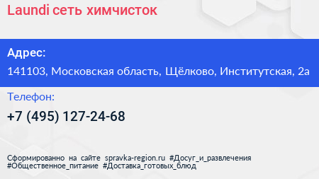 Laundi, сеть химчисток по адресу 141103, Московская область, Щёлково, Институтская, 2а в дальнейшем Организация, размещена в следующих категориях: