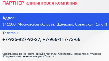 ПАРТНЕР, клининговая компания по адресу 141100, Московская область, Щёлково, Советская, 16 ст1 в дальнейшем Организация, размещена в следующих категориях:
