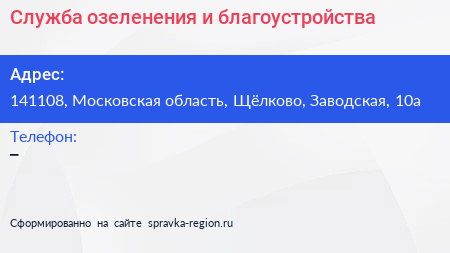 Служба озеленения и благоустройства по адресу 141108, Московская область, Щёлково, Заводская, 10а в дальнейшем Организация, размещена в следующих категориях: