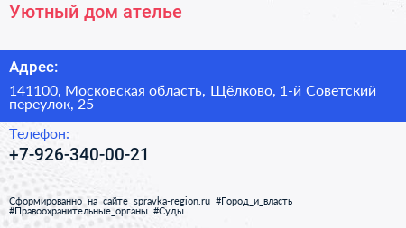 Уютный дом, ателье по адресу 141100, Московская область, Щёлково, 1-й Советский переулок, 25 в дальнейшем Организация, размещена в следующих категориях: