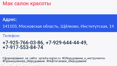 Мак, салон красоты по адресу 141103, Московская область, Щёлково, Институтская, 14 в дальнейшем Организация, размещена в следующих категориях: