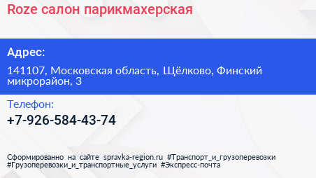 Roze, салон-парикмахерская по адресу 141107, Московская область, Щёлково, Финский микрорайон, 3 в дальнейшем Организация, размещена в следующих категориях: