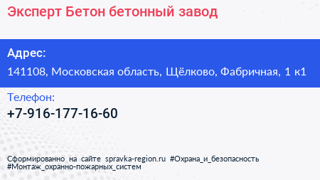 Эксперт Бетон, бетонный завод по адресу 141108, Московская область, Щёлково, Фабричная, 1 к1 в дальнейшем Организация, размещена в следующих категориях: