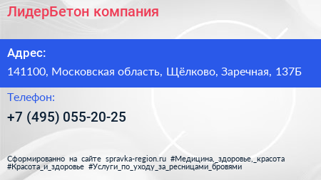 ЛидерБетон, компания по адресу 141100, Московская область, Щёлково, Заречная, 137Б в дальнейшем Организация, размещена в следующих категориях: