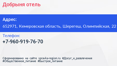 Адрес: Кемеровская область, Шерегеш, Олимпийская, 1ж/5