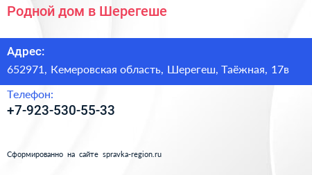Родной дом в Шерегеше по адресу 652971, Кемеровская область, Шерегеш, Таёжная, 17в в дальнейшем Организация, размещена в следующих категориях: