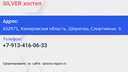 SILVER, хостел по адресу 652971, Кемеровская область, Шерегеш, Спортивная, 6 в дальнейшем Организация, размещена в следующих категориях: