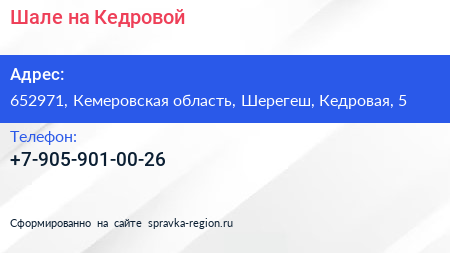 Адрес: Кемеровская область, Шерегеш, Олимпийская, 1ж/5
