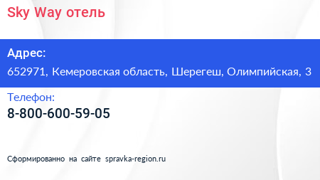 Sky Way, отель по адресу 652971, Кемеровская область, Шерегеш, Олимпийская, 3 в дальнейшем Организация, размещена в следующих категориях: