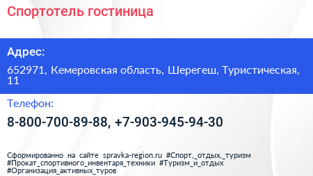 Адрес: Кемеровская область, Шерегеш, Спортивная улица, 11/1