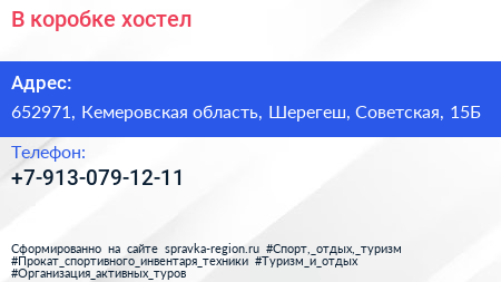 В коробке, хостел по адресу 652971, Кемеровская область, Шерегеш, Советская, 15Б в дальнейшем Организация, размещена в следующих категориях: