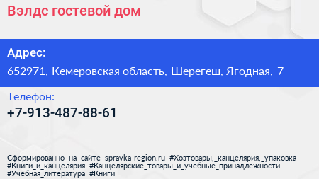 Вэлдс, гостевой дом по адресу 652971, Кемеровская область, Шерегеш, Ягодная, 7 в дальнейшем Организация, размещена в следующих категориях: