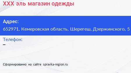 XXX-эль, магазин одежды по адресу 652971, Кемеровская область, Шерегеш, Дзержинского, 5 в дальнейшем Организация, размещена в следующих категориях: