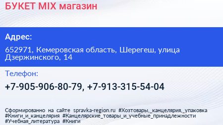 БУКЕТ MIX, магазин по адресу 652971, Кемеровская область, Шерегеш, улица Дзержинского, 14 в дальнейшем Организация, размещена в следующих категориях: