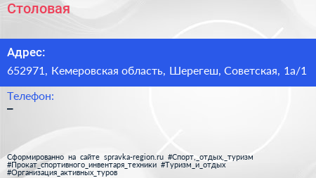 Столовая по адресу 652971, Кемеровская область, Шерегеш, Советская, 1а/1 в дальнейшем Организация, размещена в следующих категориях:
