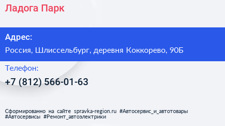 Ладога Парк по адресу Турбаза Ладога парк, 41К-301, Коккорево, Рахьинское городское поселение, Всеволожский район, Ленинградская область, Северо-Западный федеральный округ, 188672, Россия в дальнейшем Организация, размещена в следующих категориях: