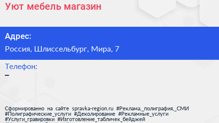Уют мебель, магазин по адресу ТРК Морозовский, 7, улица Мира, посёлок имени Морозова, Морозовское городское поселение, Всеволожский район, Ленинградская область, Северо-Западный федеральный округ, 188679, Россия в дальнейшем Организация, размещена в следующих категориях: